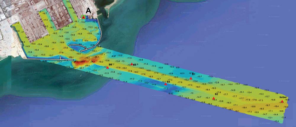 Multi-beam hydrographic point collection operation Shahid Rajaee Port